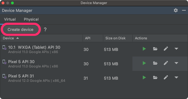 Set up a virtual device (tablet or large-screen)