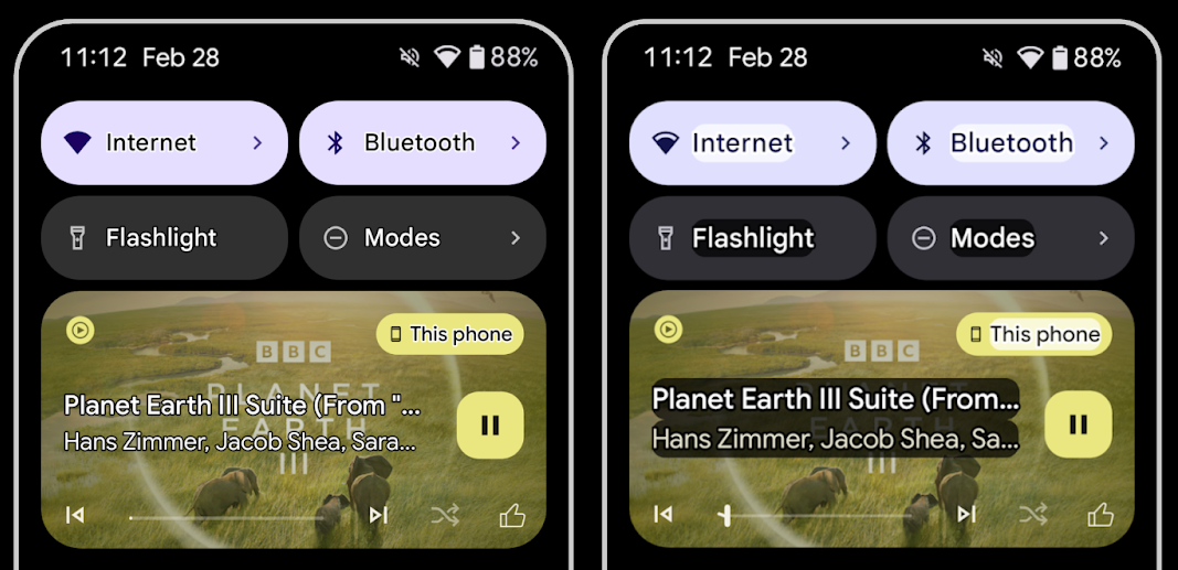 ב-Android 16 נוספו ממשקי API נוספים לשיפור הסמנטיקה של ממשק המשתמש, כדי לשפר את העקביות למשתמשים שמסתמכים על שירותי נגישות, כמו TalkBack.