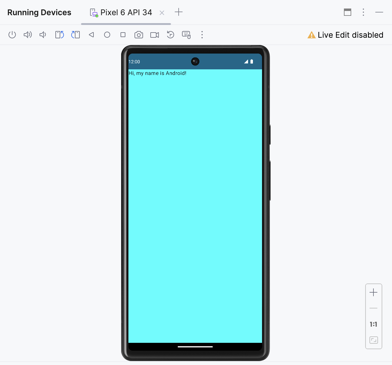 Tuyệt vời! Thiết bị ảo của bạn hiện đã hoạt động. Ứng dụng sẽ chạy và bạn có thể xem được màu nền cũng như lời chào trên màn hình.