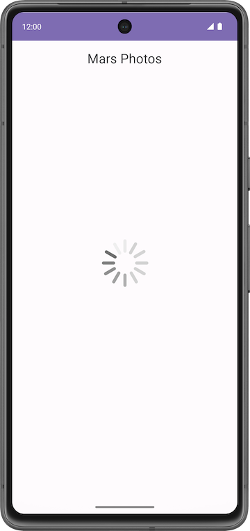 MarsPhotosApp, which displays the contents on the screen, such as the top app bar and theHomeScreencomposable. The placeholder text in the previous step is displayed in this composable. - In the next codelab, this composable displays the data received from the Mars photos backend server.