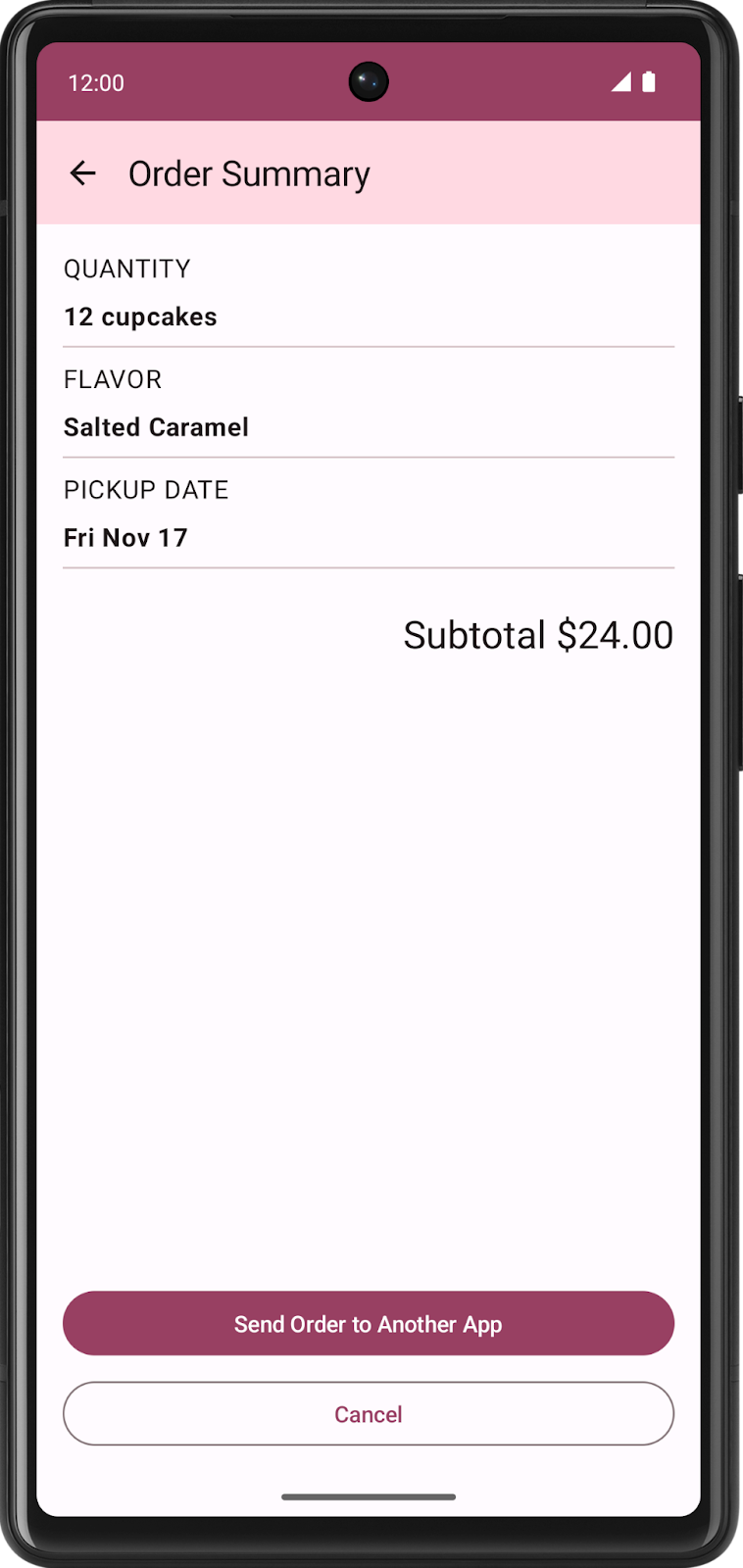 CupcakeApp, lors de l'appel verscomposable()pourCucpakeScreen.Summary.name, obtenez une référence à l'objet de contexte afin de pouvoir le transmettre à la fonctionshareOrder().