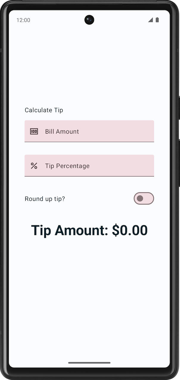 Column()블록 끝에 있는TipTimeLayout()함수에서$0.00를 표시하는 텍스트 컴포저블을 확인합니다. 계산된 팁 금액으로 이 값을 업데이트합니다.