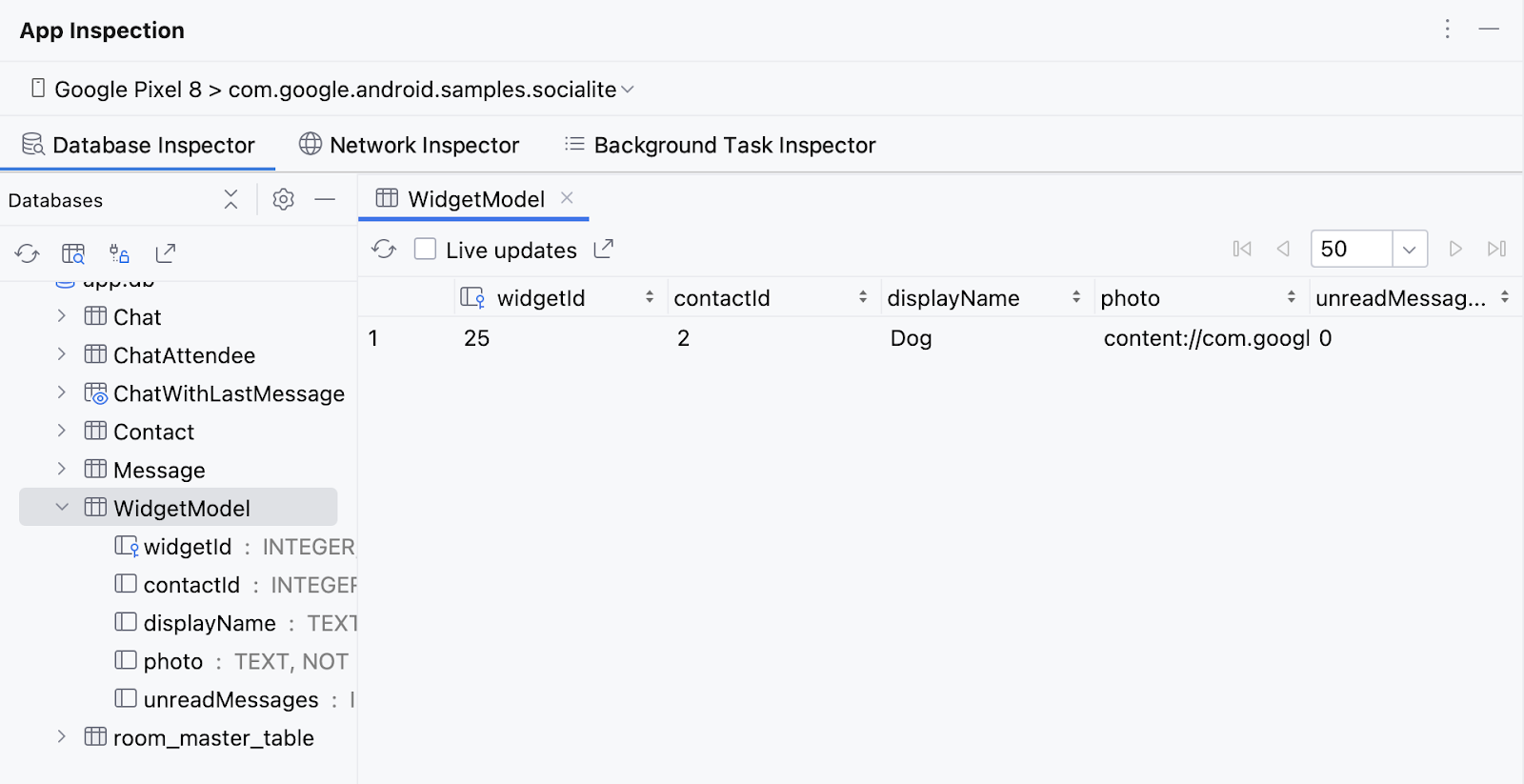 SociaLiteAppWidgetReceiver, ajoutez l'annotation HiltAndroidEntryPointà votre déclaration de classe de récepteur, puis injectez l'instanceWidgetModelRepository. - Appelez