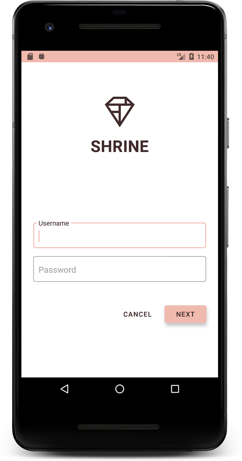 在 Codelab MDC-101 和 MDC-102 中,您使用 Material Components (MDC) 为名为 Shrine 的应用构建了基础内容。Shrine 是一款销售服饰和家居用品的电子商务应用。该应用包含的用户流从登录屏幕开始,然后将用户转到显示商品的主屏幕。