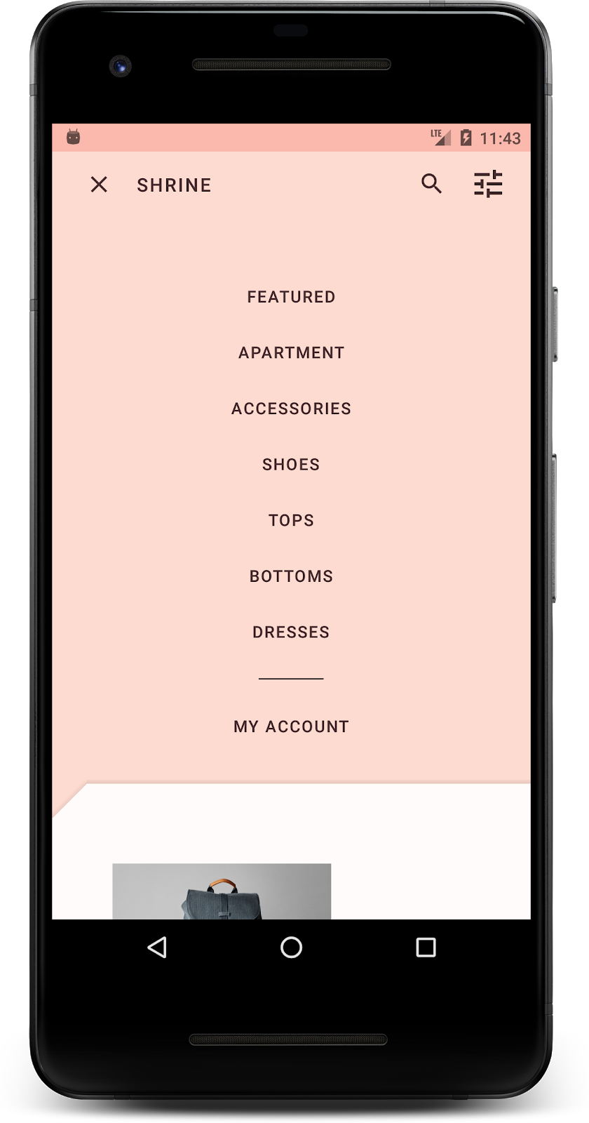 Material Design 最近经过了扩展,让设计人员和开发者能够更灵活地表达其商品的品牌。现在,您可以使用 MDC 自定义 Shrine 并反映其独特的样式。
