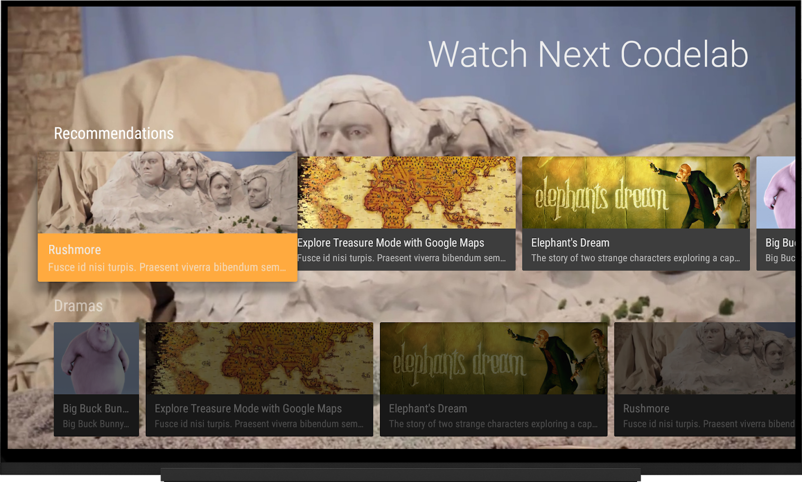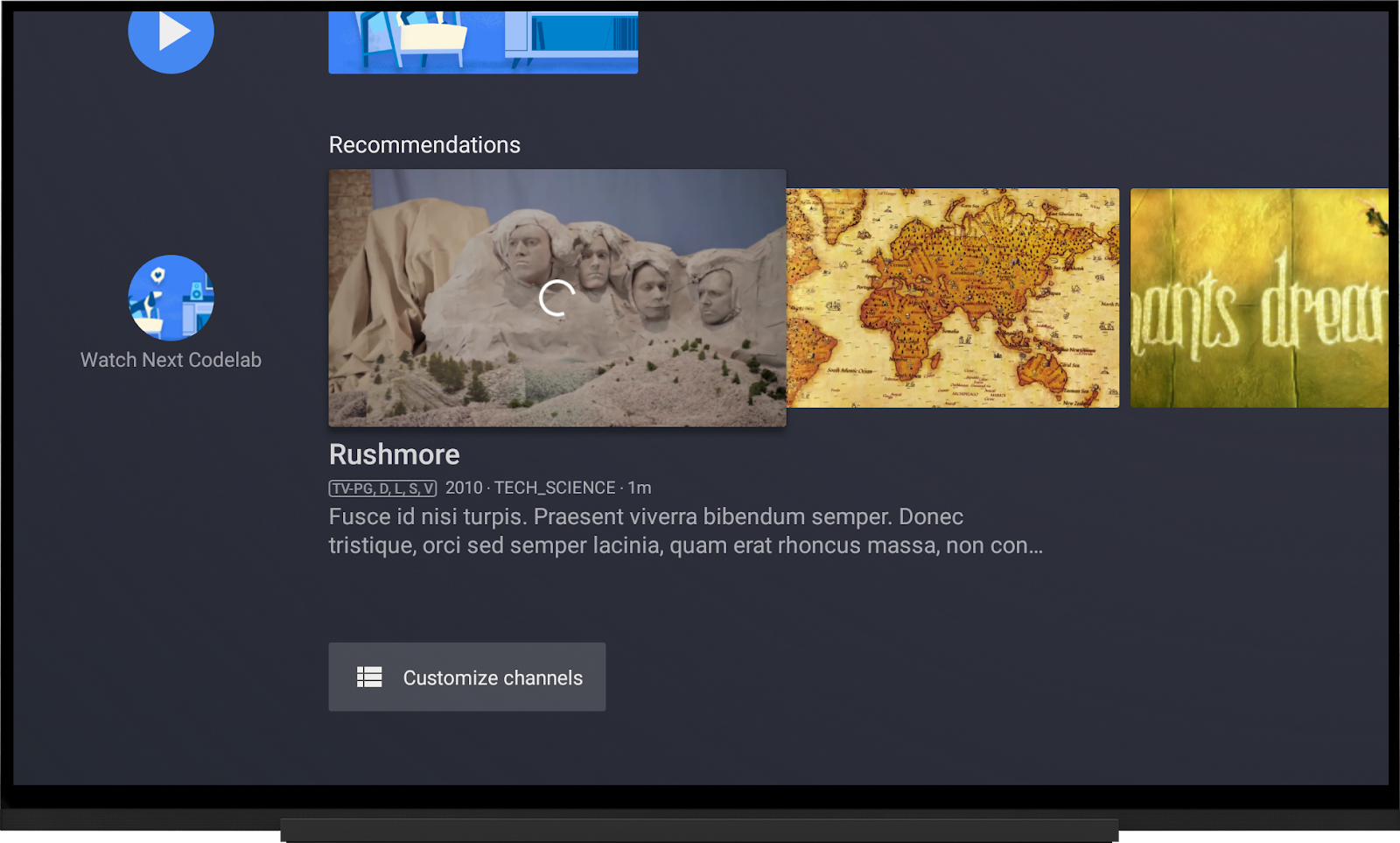 此 Codelab 介绍了如何在启动器屏幕上添加、更新或移除“接下来播放”行中的节目。