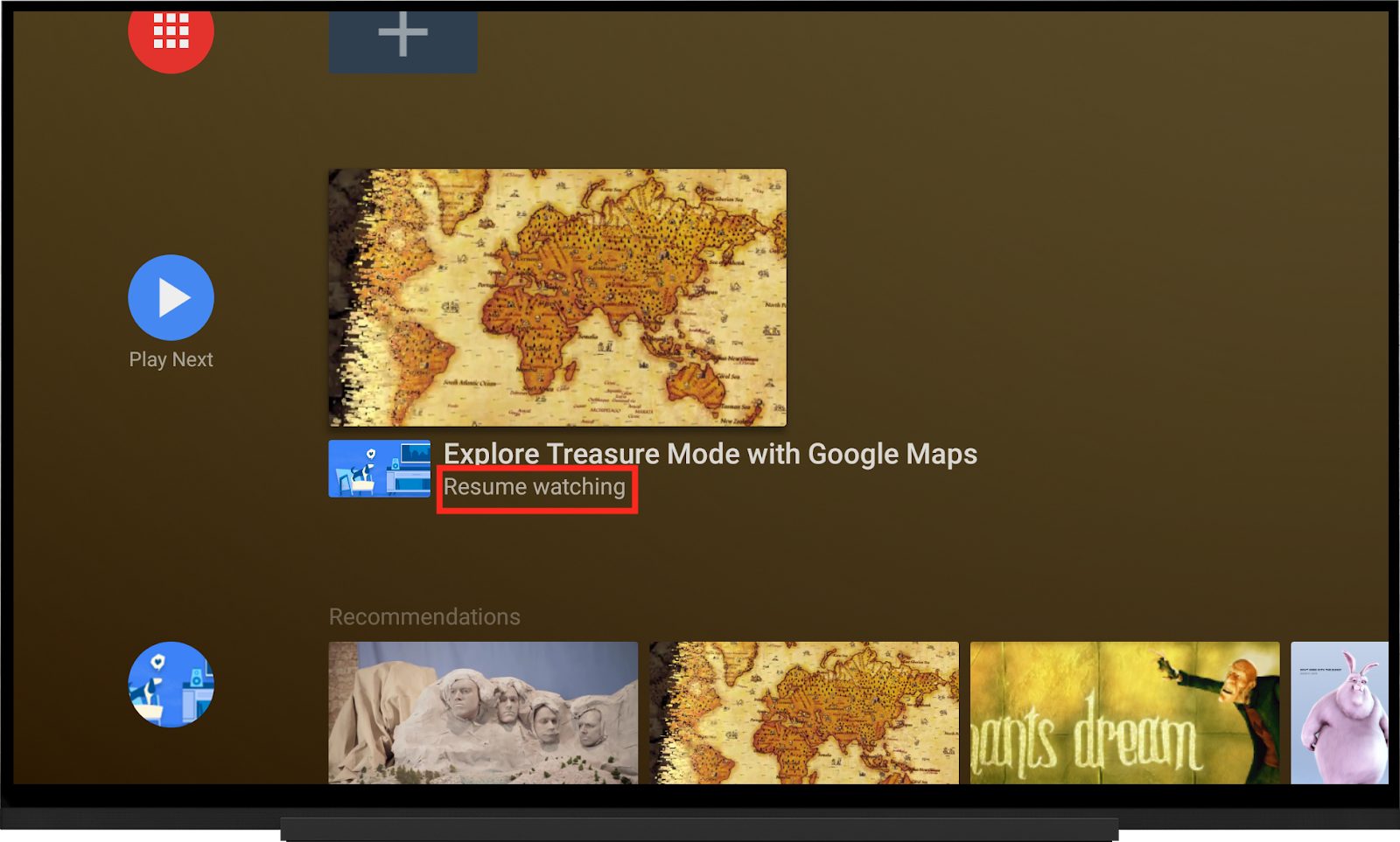 如果用户在节目结束前停止观看,您可以将相应节目添加到“接下来播放”行,以便用户日后观看。这是“接下来播放”的主要用途。该应用会将内容与进度指示器一起添加到“接下来播放”行。