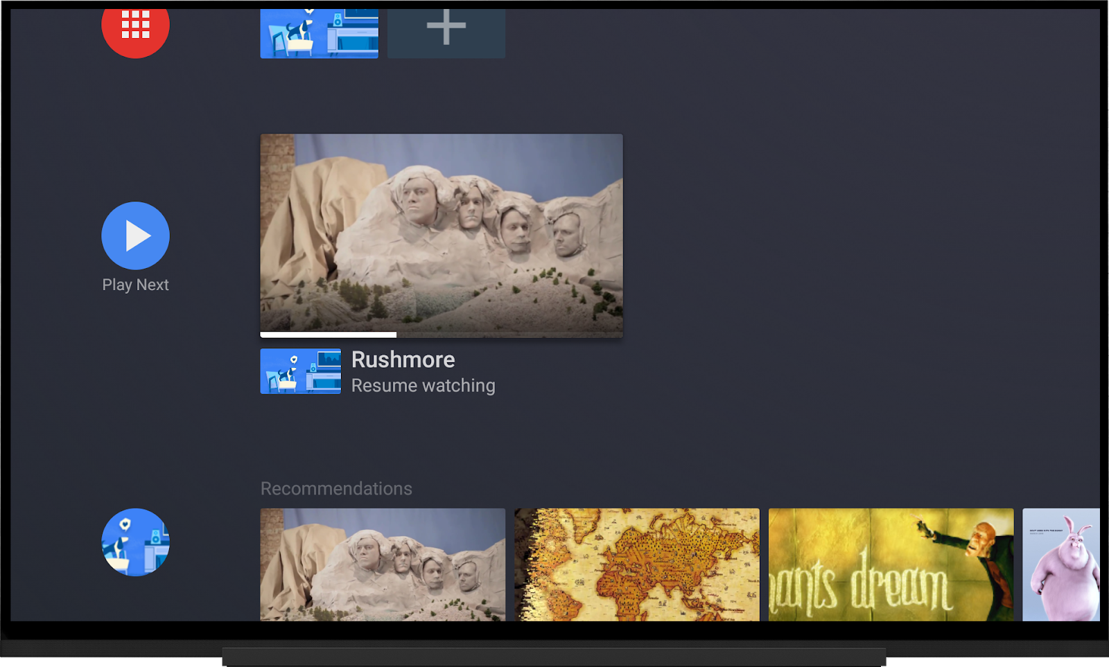 “接下来播放”行是一个由系统管理的频道,可供所有 TV 应用使用。