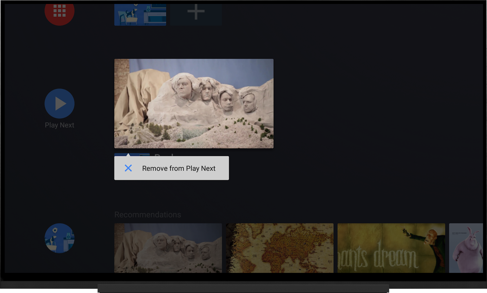 对于已添加到“接下来播放”行的节目,只需长按该节目,然后选择“remove from play next”菜单选项,即可将其移除。