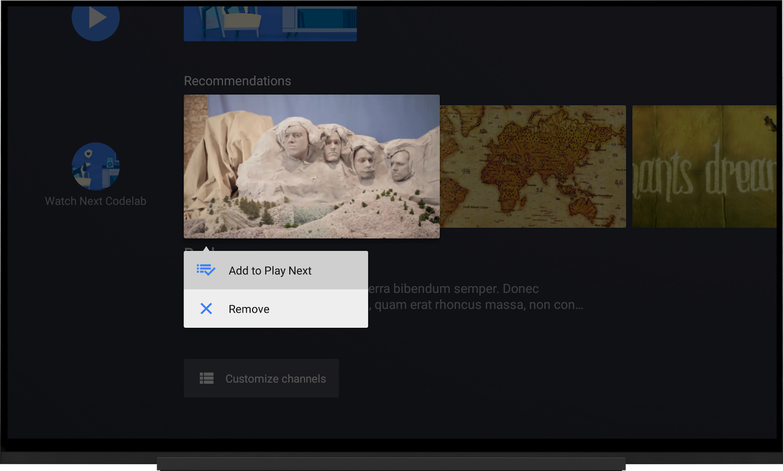 此 Codelab 介绍了如何在启动器屏幕上添加、更新或移除“接下来播放”行中的节目。