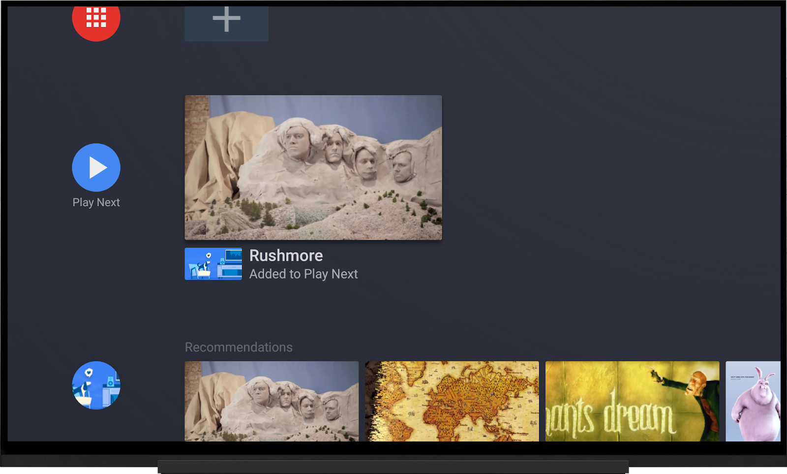 此 Codelab 管理着一个观看列表,用户可向其中添加以后要观看的电影。如果您将某部电影添加到观看列表,该电影也会显示在“接下来播放”行中,其类型为 WATCH_NEXT_TYPE_WATCHLIST。该类型与在将频道中的节目添加到“接下来播放”行时系统使用的类型相同。如需详细了解观看列表的工作原理,请参阅 WatchlistManager