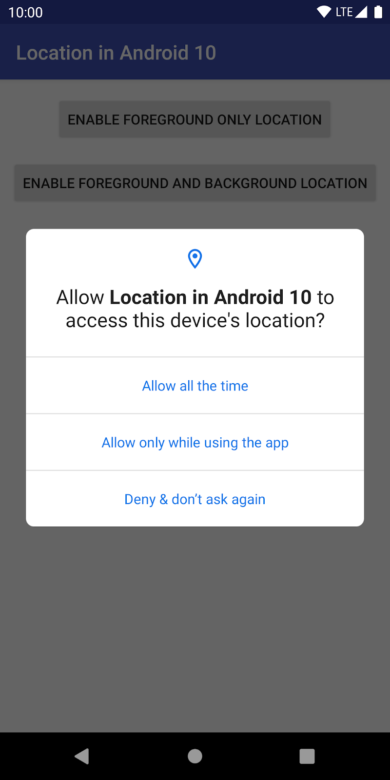 现在,您的应用已完全支持 Android 10 位置信息功能。我们来试用一下吧!
