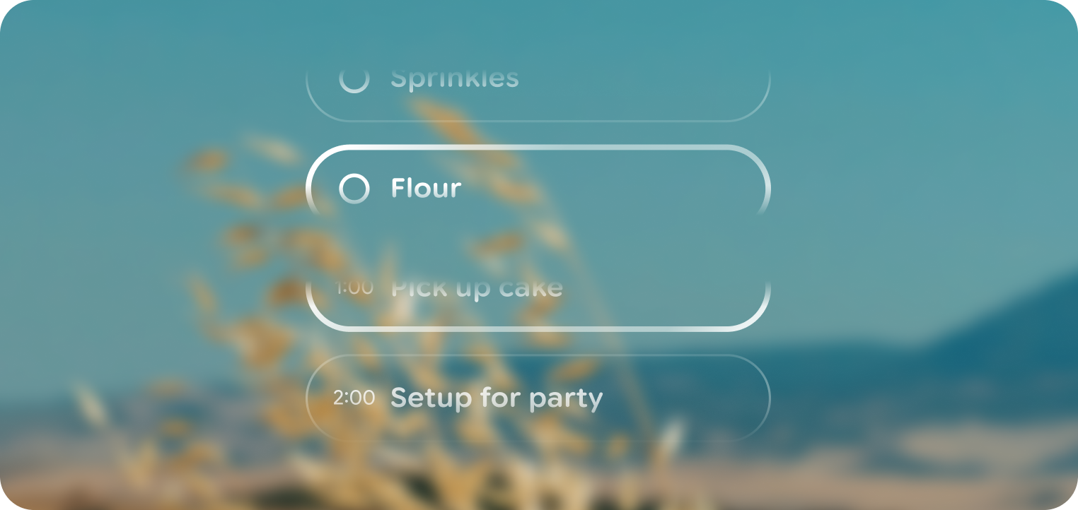 Jika daftar berisi lebih banyak item daripada yang dapat dimuat dalam tampilan, scrim hitam akan digunakan di dekat batas daftar.