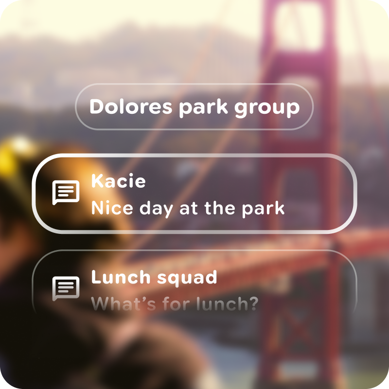 يمكنك إنشاء تطبيق "نظارات الذكاء الاصطناعي" باستخدام إطار عمل واجهة المستخدم Glimmer في Jetpack Compose للحصول على تجارب واقع معزّز تعمل على جميع "نظارات الذكاء الاصطناعي". Jetpack Compose Glimmer هي إحدى أولى أُطر واجهة المستخدم التي تم تحسينها لتتوافق مع الشاشات الشفافة وتصميم نظارات الذكاء الاصطناعي.