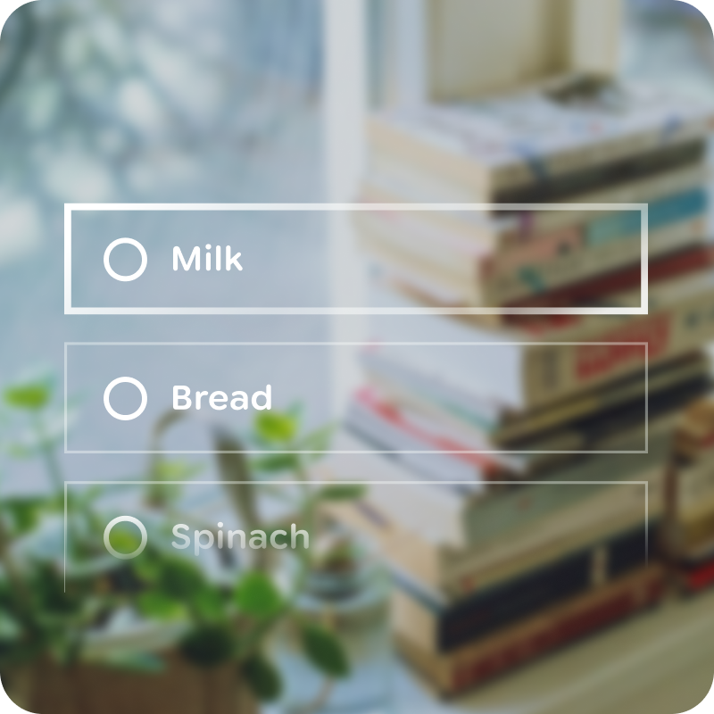 ビジュアル デザインの原則では、AI グラスの小型の近眼ディスプレイという独自の制約に合わせて、明瞭さ、読みやすさ、最小限の注意散漫さを重視しています。表示領域が限られていることと、ユーザーの主な関心が現実世界にあることを考慮してください。視覚要素は、鮮明でコントラストが高く、必要なときにのみ表示され、関連性がなくなるとすぐにフェードアウトするように設計する必要があります。