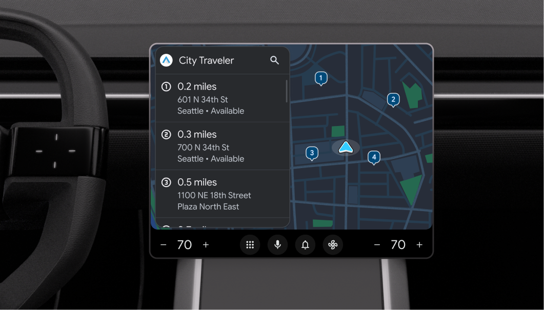 গাড়ির জন্য Android টেমপ্লেটগুলি সরবরাহ করে যা আপনাকে ড্রাইভারের যাত্রায় সহায়তা করার জন্য বিভিন্ন অ্যাপ অভিজ্ঞতা তৈরি করতে দেয়, পার্কিং এবং চার্জিং বিকল্পগুলি খুঁজে পাওয়া থেকে শুরু করে আবহাওয়া পরীক্ষা করা, রাস্তায় থাকাকালীন বাড়ির ডিভাইসগুলির সাথে যোগাযোগ করা পর্যন্ত।