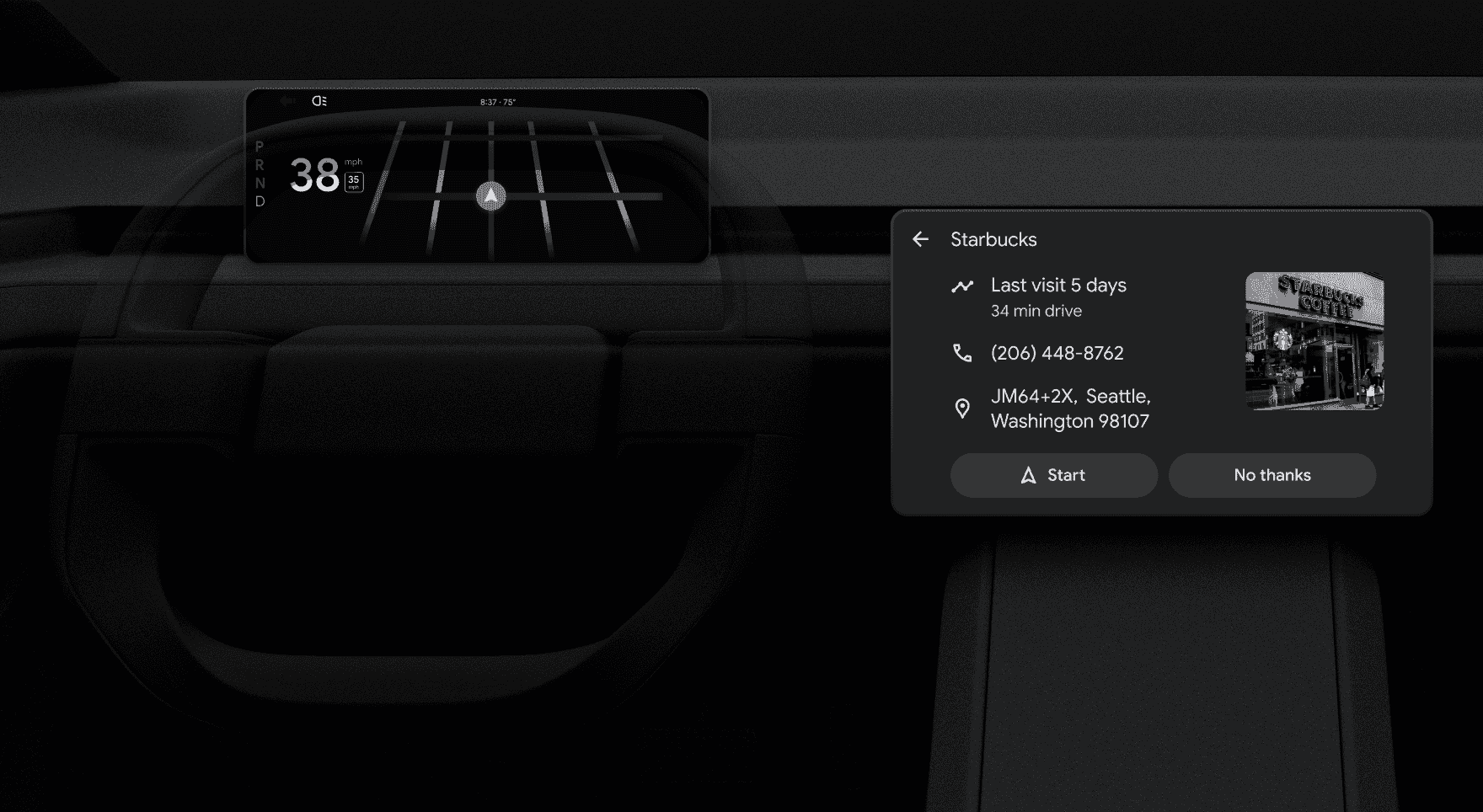 ドライバーの注意散漫を最小限に抑えるもう 1 つの方法は、ハンドルの背後にあるインストルメント クラスタに地図を表示することです。ナビゲーション テンプレートのクラスタ表示オプションを使用すると、ドライバーは前方を向いたままナビゲーションできます。