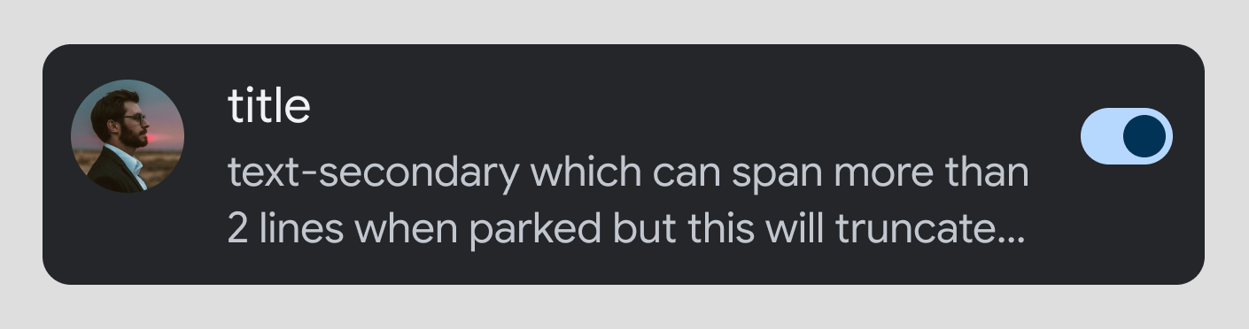 Texto secundario más largo: Si el texto secundario tiene más de 2 líneas, se truncará mientras conduces. El texto completo solo se verá cuando el vehículo esté estacionado.