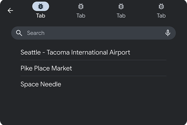 Esse recurso é especialmente útil para organizar conteúdo ou visualizações que os usuários vão querer alternar com frequência, como dispositivos disponíveis, configurações e muito mais.