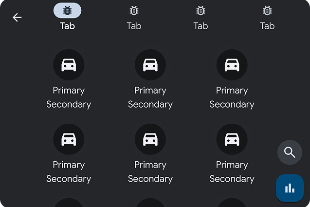 - Barra de guias com ícone do app e até quatro guias. Cada guia precisa ter um ícone e um título.