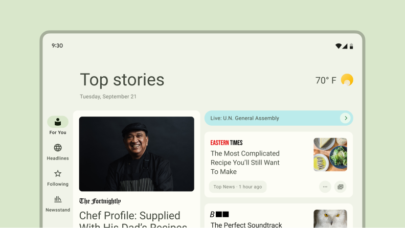 Układy kanoniczne zapewniają optymalną wygodę korzystania z różnych urządzeń z dużymi ekranami – tabletów, urządzeń składanych i urządzeń z ChromeOS – oraz telefonów wszystkich rozmiarów. Komponenty prowadnic nawigacyjnych i szuflady zapewniają nawigację, dzięki czemu interfejs jest wygodny i kontrolowany.