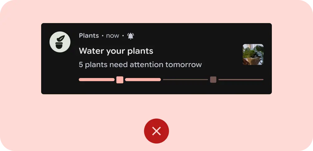 실시간 업데이트는 중요한 업데이트의 요약을 제공하므로 사용자가 앱을 열지 않고도 진행 상황을 추적할 수 있습니다. 사용자는 실시간 업데이트 알림을 일시적으로 닫거나 표준 알림으로 강등할 수 있습니다. 라이브 업데이트 알림은 간결하고 시의적절하며 관련성 있는 정보를 제공하기 위한 알림 원칙을 따라야 합니다.