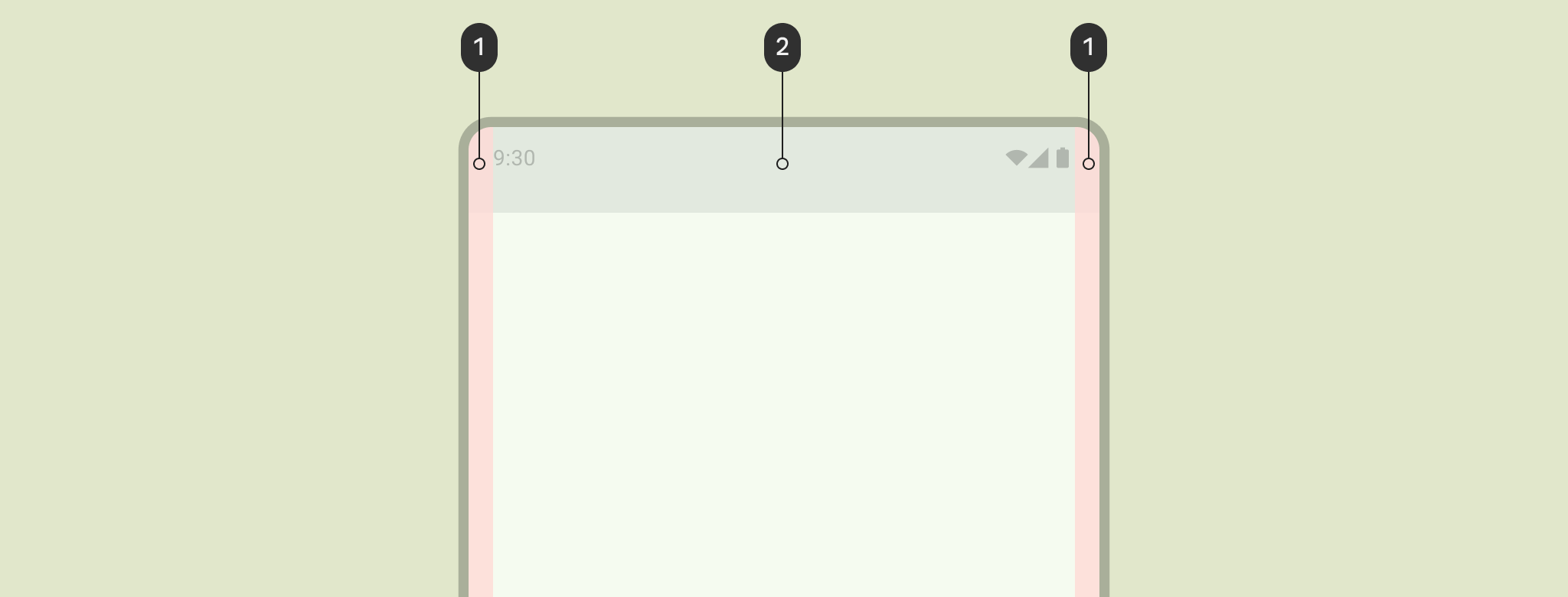 이 단계에서 인셋 안전 영역 또는 인셋을 확인할 수도 있습니다. 시스템 표시줄 인셋은 중요한 작업이 시스템 표시줄 아래로 떨어지는 것을 방지합니다. 자세한 내용은 시스템 표시줄 뒤에 콘텐츠 그리기를 참고하세요.