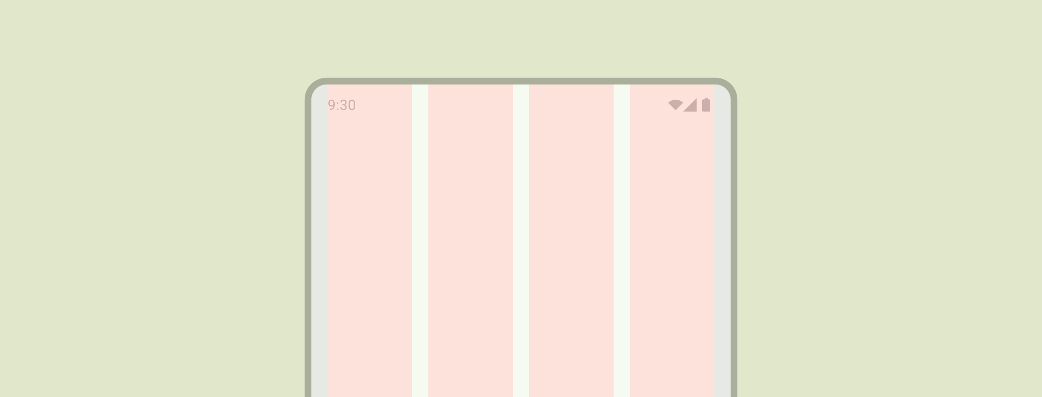 कॉलम, ग्रिड स्ट्रक्चर बनाते हैं. इससे लेआउट को वर्टिकल तौर पर तय किया जाता है. इसके लिए, बॉडी एरिया में मौजूद कॉन्टेंट को बांटा जाता है. कॉन्टेंट को स्क्रीन के उन हिस्सों में रखा जाता है जिनमें कॉलम होते हैं. कॉन्टेंट को अलाइन करने के लिए, इसे नीचे मौजूद ग्रिड के साथ अलाइन करें. हालांकि, इसका साइज़ बदला जा सकता है. कॉलम ग्रिड सेट अप करने और लेआउट की बुनियादी बातों में कॉन्टेंट लागू करने के बारे में बुनियादी जानकारी पाएं.