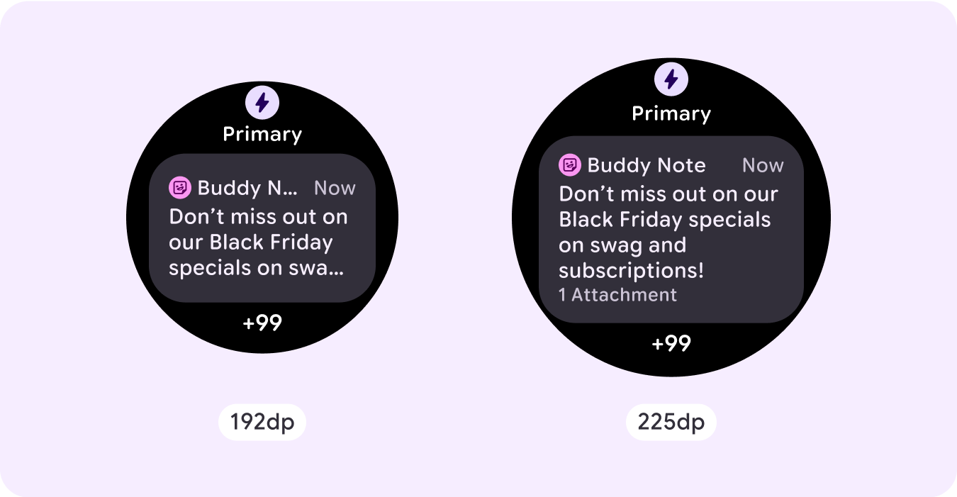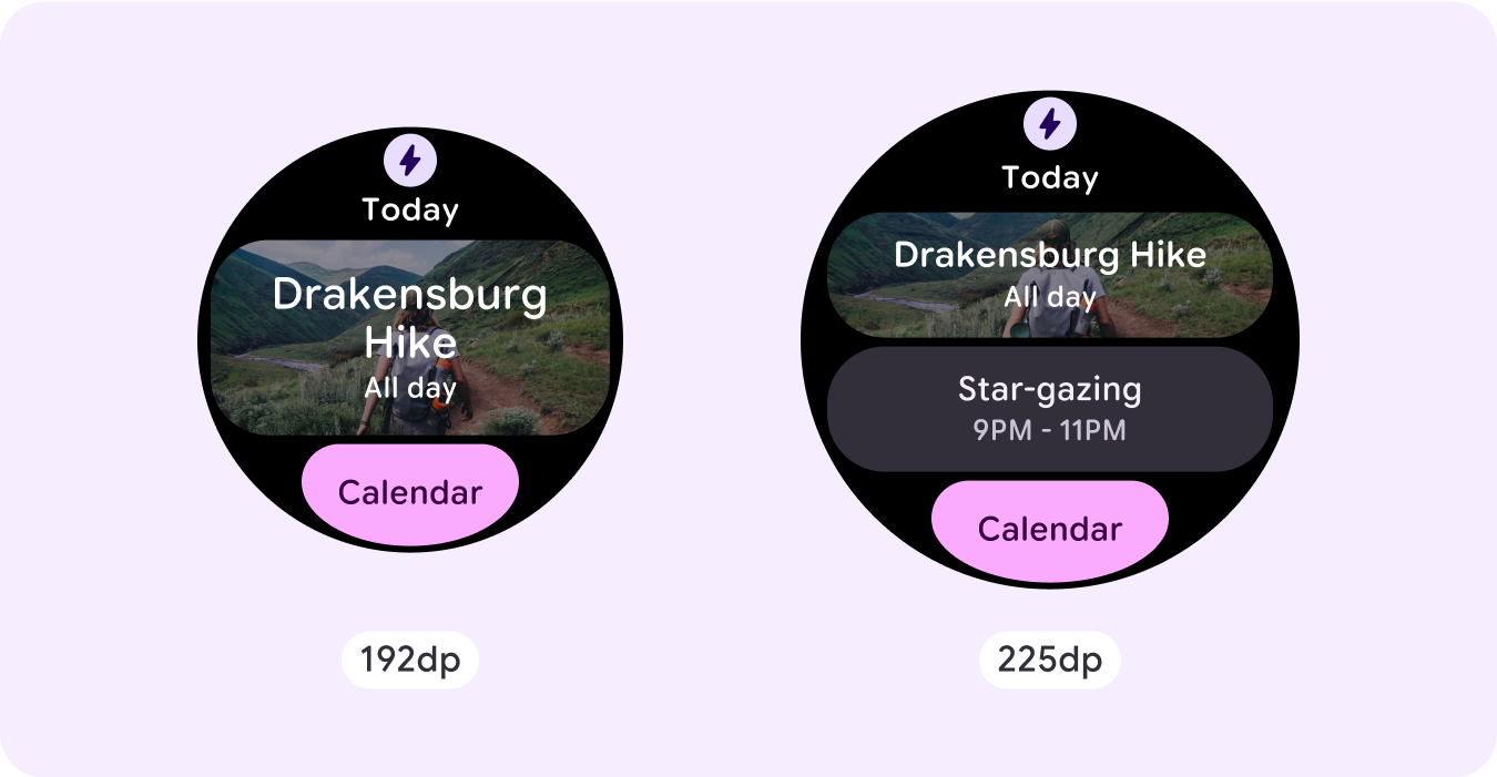 这需要为每个断点采用不同的设计。较大的屏幕设计(225 dp 以上)可以包含以下额外元素: