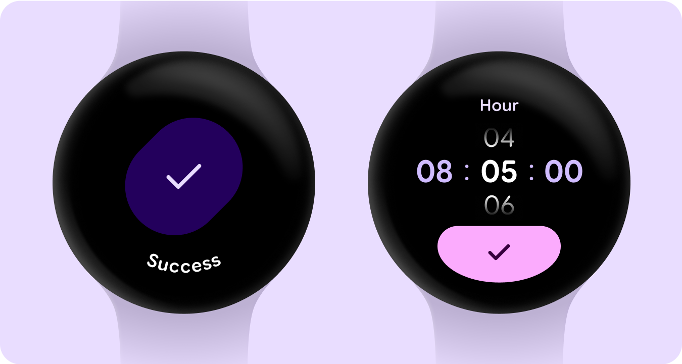 ما همچنین با استفاده از شکلهای ظرف انعطافپذیر برای گرد کردن و تیز کردن شعاع گوشه برای پشتیبانی از لیستهای شکلگیری شکل و حالتهای دکمه، به زبان شکل به روشی بسیار گستردهتر و معنادارتر متمایل میشویم. ما دکمههای لبهدار را بهعنوان یک الگوی طراحی نمادین و قابل مالکیت جدید برای دستگاههای گرد در Wear معرفی میکنیم.