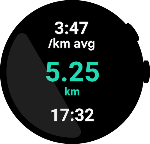 पहली इमेज. उपयोगकर्ता, स्मार्टवॉच की होम स्क्रीन से, चल रही गतिविधि पर वापस जा सकते हैं.