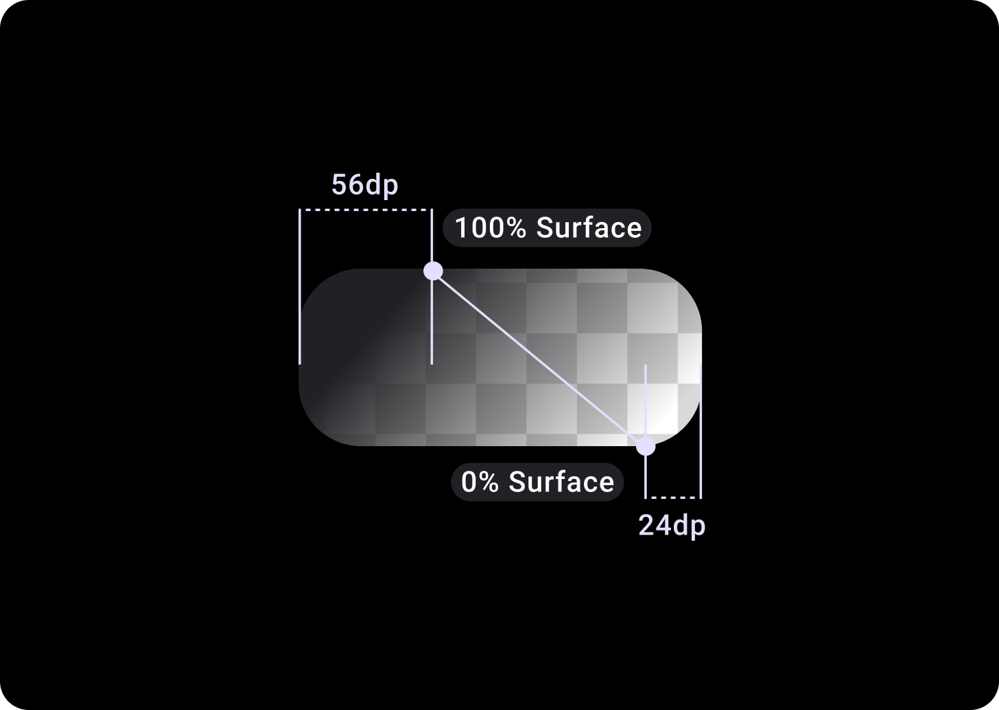 B/R = 0% পৃষ্ঠ থেকে নীচে/ডান + 24 dp প্যাডিং