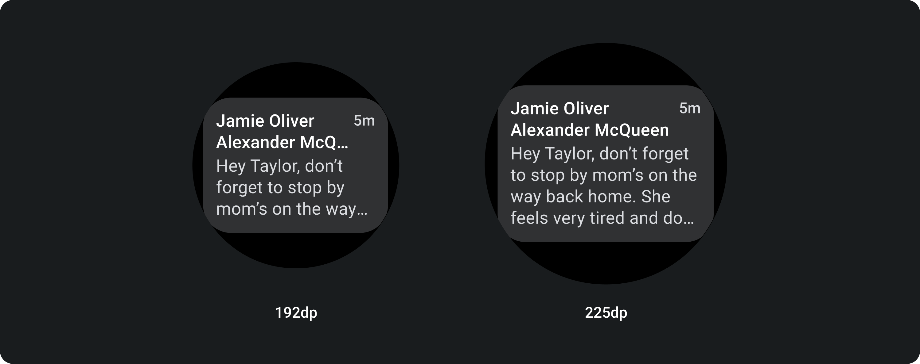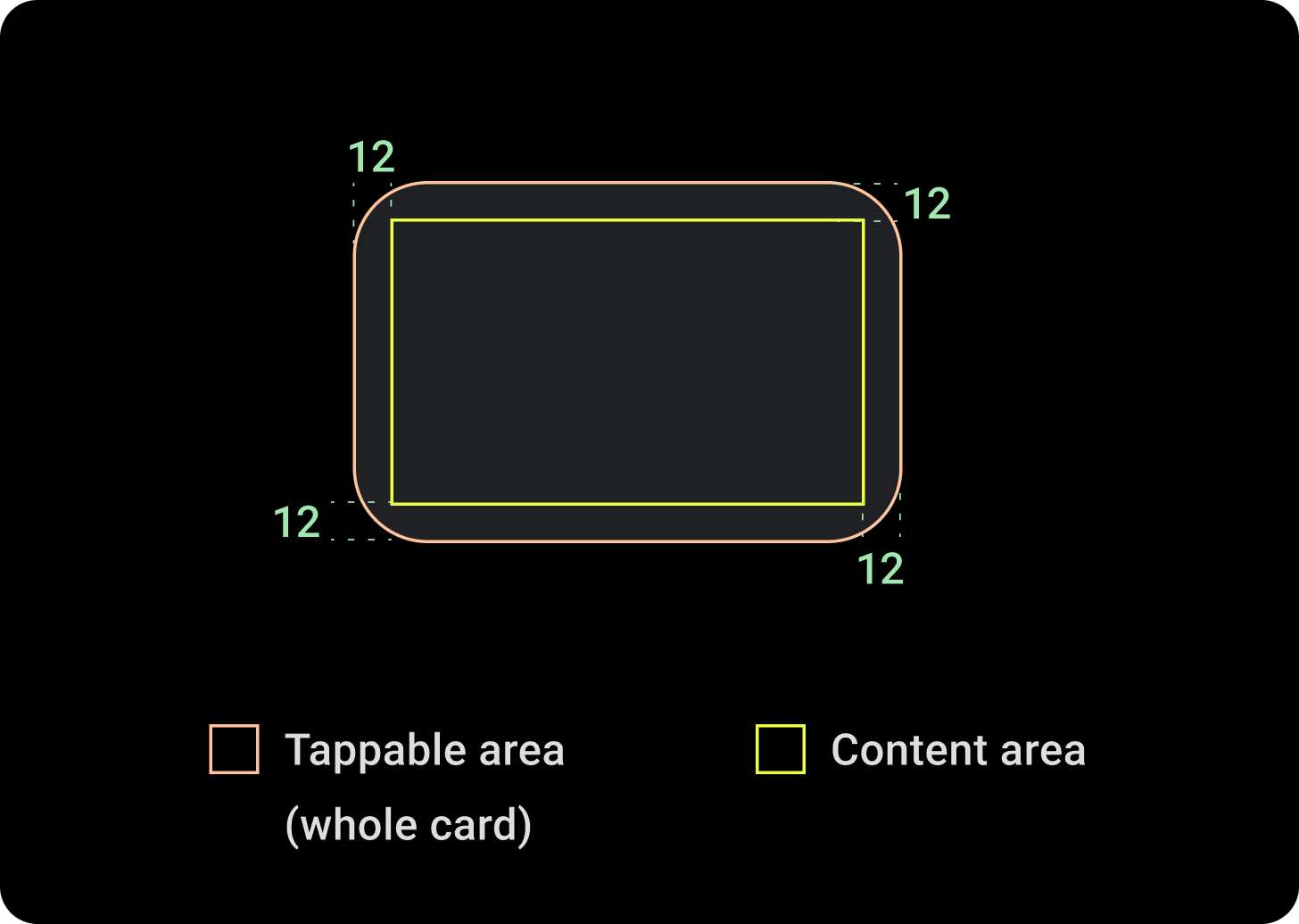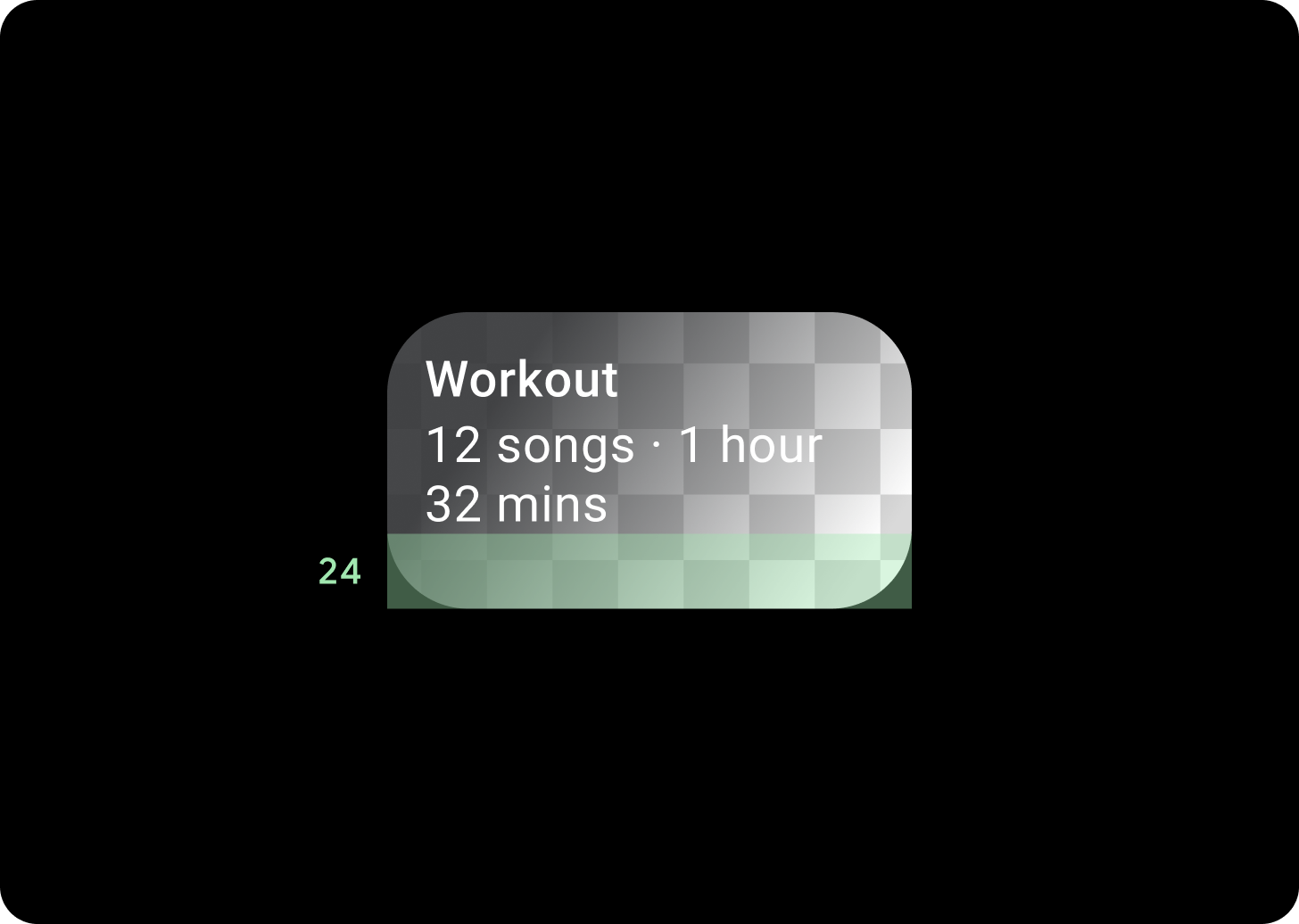 ডিফল্টরূপে, কার্ডগুলি বৃত্তাকার কোণ এবং একটি গ্রেডিয়েন্ট ব্যাকগ্রাউন্ড সহ আয়তক্ষেত্রাকার হয়। আপনার কার্ডের সর্বোচ্চ উচ্চতা 60% এ সেট করুন যাতে এটি সম্পূর্ণরূপে স্ক্রিনে প্রদর্শিত হয় কারণ বৃত্তাকার প্রদর্শনগুলি স্ক্রিনের উপরের এবং নীচের 20% পর্যন্ত ক্লিপ করতে পারে।