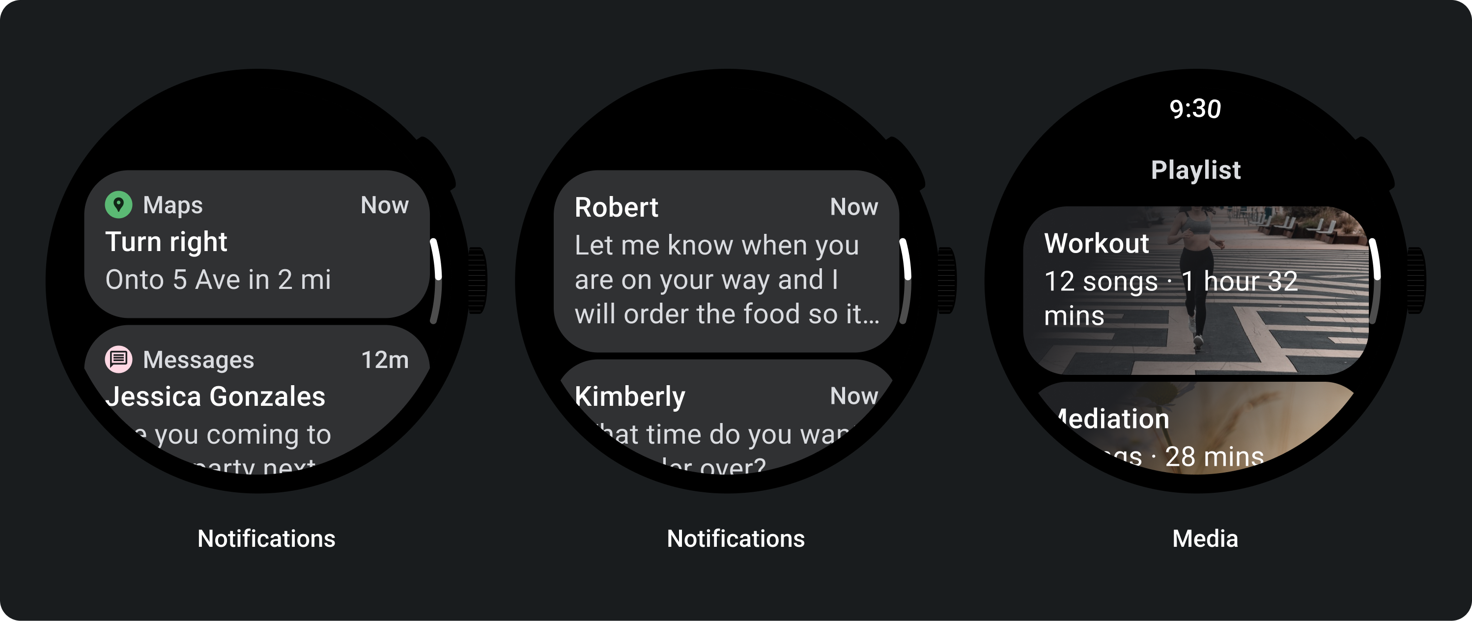একটি অ্যাপ্লিকেশনের মধ্যে তথ্য দেখানোর জন্য শিরোনাম কার্ড ব্যবহার করুন, যেমন একটি বার্তা। শিরোনাম কার্ডগুলির একটি তিন-স্লট লেআউট রয়েছে যার মধ্যে একটি শিরোনাম, একটি ঐচ্ছিক সময় ক্ষেত্র এবং প্রাসঙ্গিক বিষয়বস্তু রয়েছে, যা হয় একটি চিত্র বা পাঠ্য।