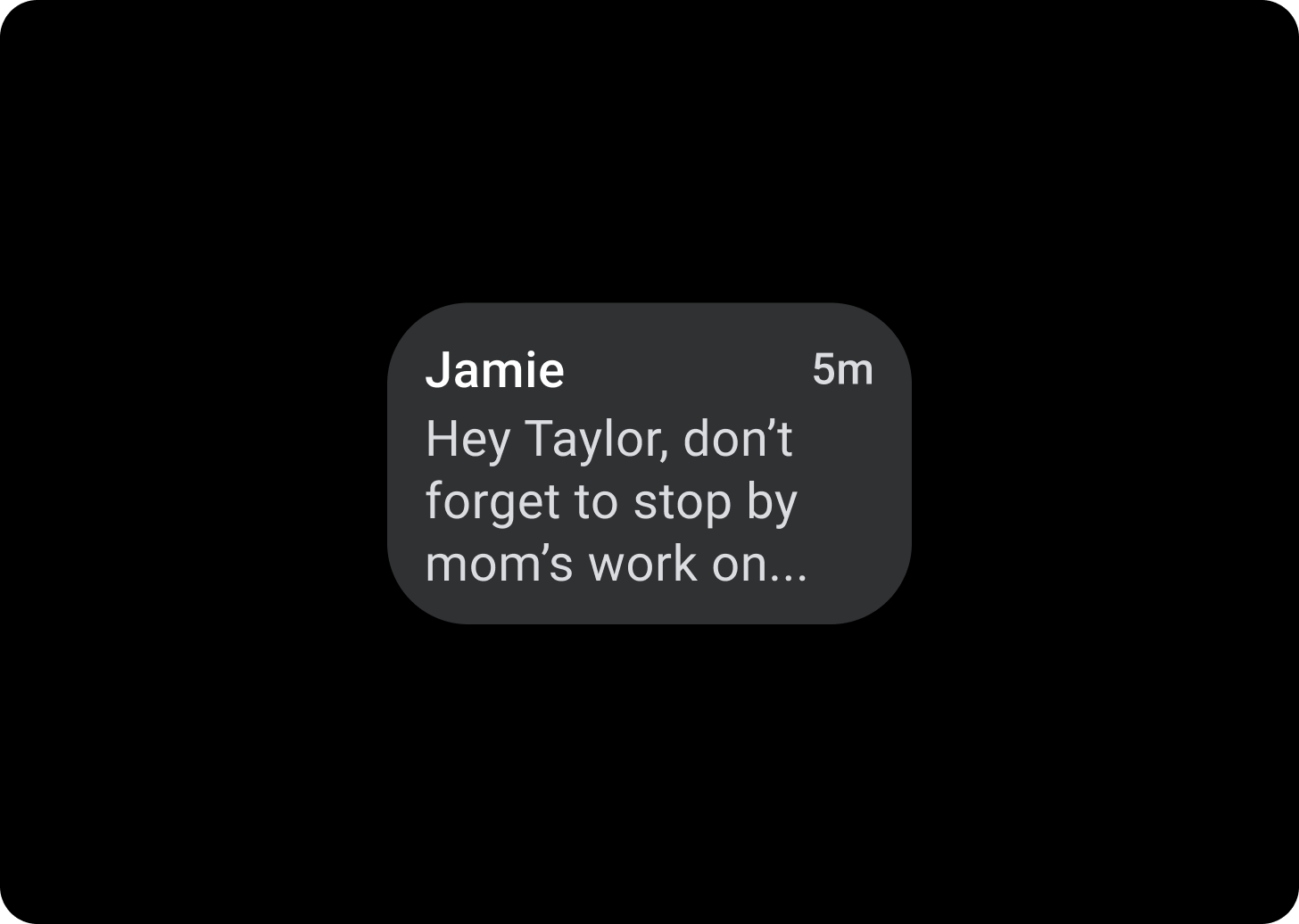 Verwenden Sie Titelkarten, um Informationen in einer App anzuzeigen, z. B. eine Nachricht. Titelkarten haben ein Layout mit drei Slots, das einen Titel, ein optionales Zeitfeld und den relevanten Inhalt enthält – entweder ein Bild oder ein Text.