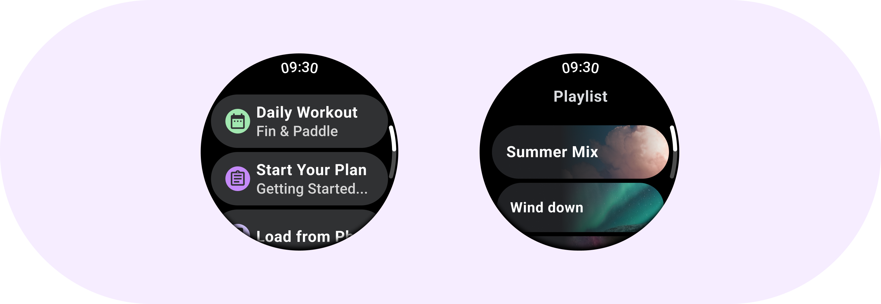 כאן אפשר לראות דוגמאות לשימוש בשבבים, כמו שבבים רגילים בהגדרות ושבבי תמונות באפליקציית אימון.