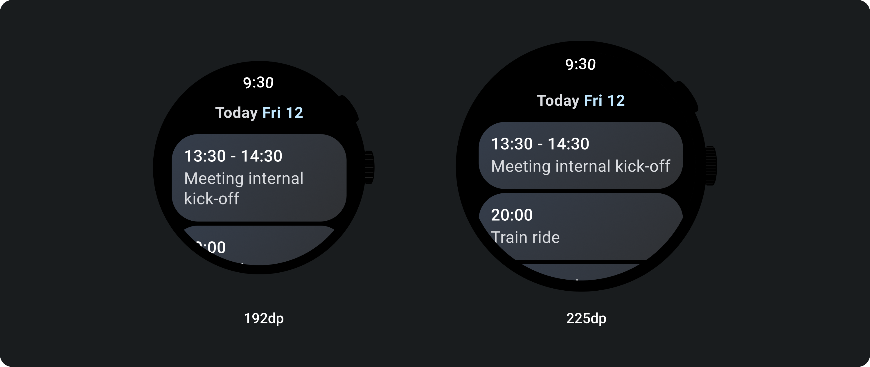 リストには、高さが固定または可変のアイテムを含めることができます。リスト コンテンツには、円形の画面に対応するのに十分な余白が必要です。