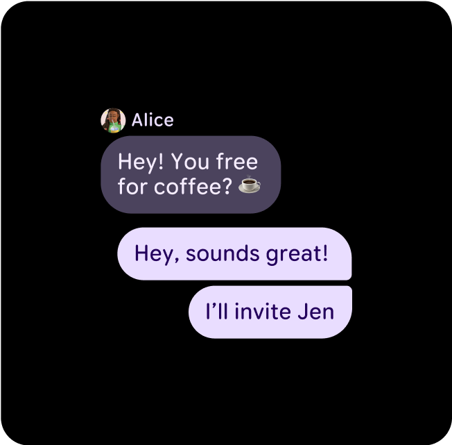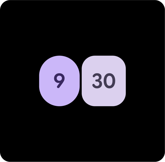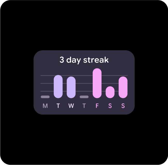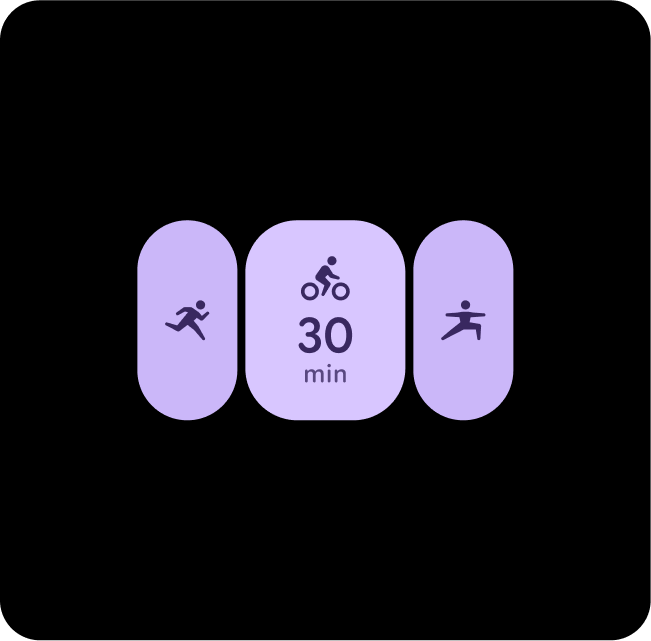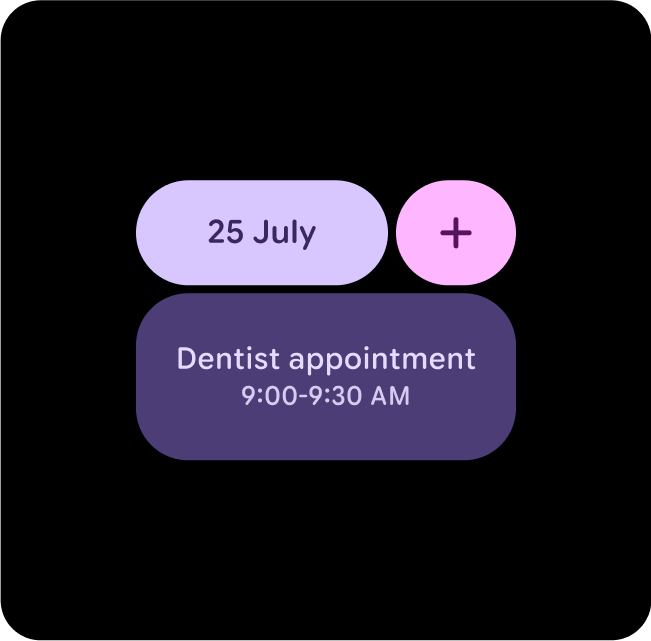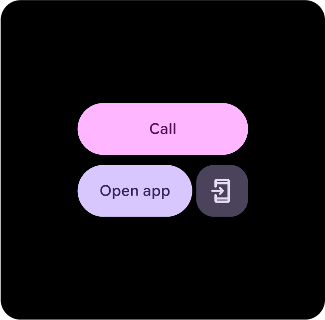 Wear OS 適用的 Material 3 Expressive 會為其顏色角色指派不同的色調、色度和色調值,藉此建立視覺階層,有效區分醒目強調色和中性表面色。系統包含主要、次要和三次要強調色角色,不僅可強化表達方式,還可透過不同的顏色選擇,進一步掌控視覺階層。這種刻意使用顏色的方式,可確保 Watch UI 在套用主題時,仍能維持一致且協調的感受。