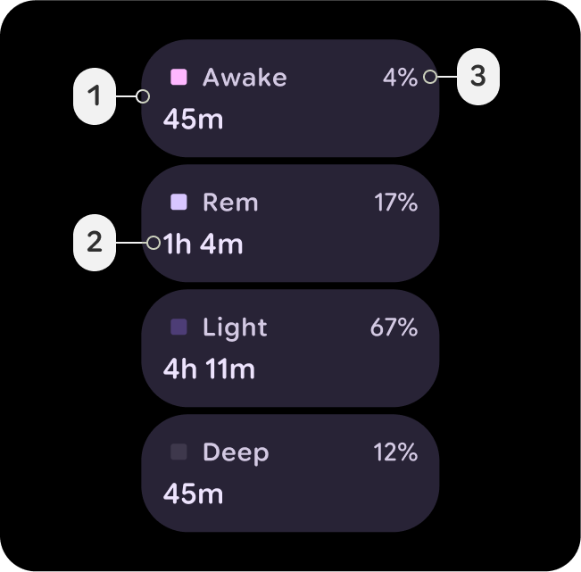 يستخدم نظام الألوان التعبيرية في Wear Material 3 ثلاث طبقات تمييز (أساسية وثانوية وثالثية) للمكوّنات الرئيسية وطبقتَين محايدتَين للسطح. يوفّر كل دور مجموعة من القيم ذات التباين المتّسق، ما يتيح مجموعات ألوان معبّرة وسهلة الاستخدام لتوفير تجربة موحّدة في أي مظهر.