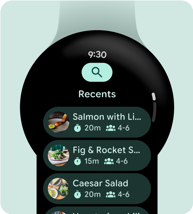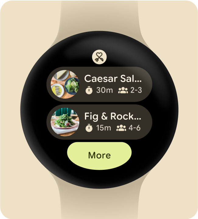 Wear OS は、マテリアル 3 Expressive で色の役割を扱う方法と同様に、ダイナミックでアクセスしやすい色表現で、個別化されたエクスペリエンスに色を適用します。Wear OS では、ウェアラブル インターフェースが黒い背景で構築されているため、ダークモードのみが使用されます。タッチデバイスで動作するプラットフォームであるため、Wear OS ではホバー状態やフォーカス状態がそれほど必要ないため、カラーパレットも制限されています。Wear OS 固有のカラーテーマ作成ツールを使用して、ブランドに合わせたカスタムテーマを作成します。マテリアル デザイン トークンをサポートし、システム UI コンポーネントとシームレスに動作するように構築された、完全な参照パレットと割り当てられたカラーロールを生成します。