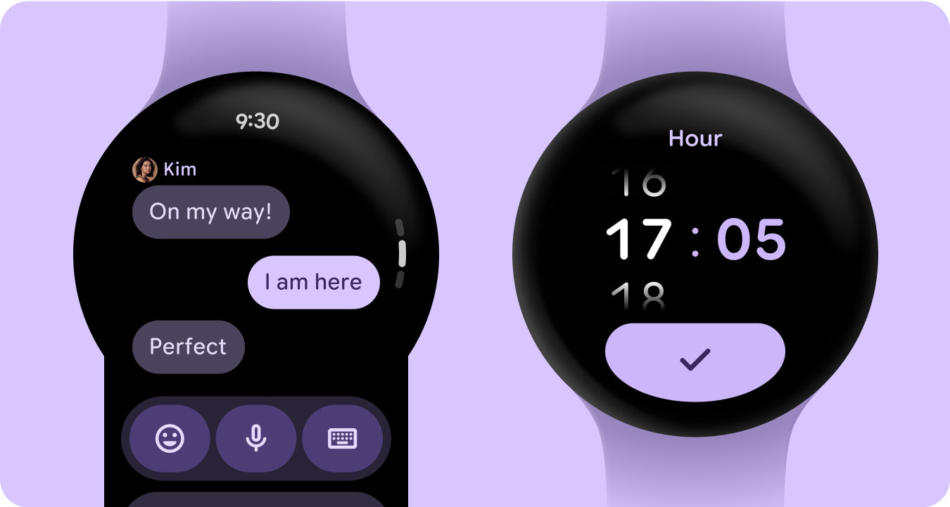 시계는 휴대전화 기기에서 사용하는 색조 배경 대신 검은색 배경으로 설계되었습니다. 어두운 테마는 저조도 환경에, 밝은 테마는 일광에 적합하지만 시계 UI는 낮과 밤 모두 원활하게 작동해야 합니다. 따라서 시계의 색상 토큰은 특별히 조정되어야 합니다.