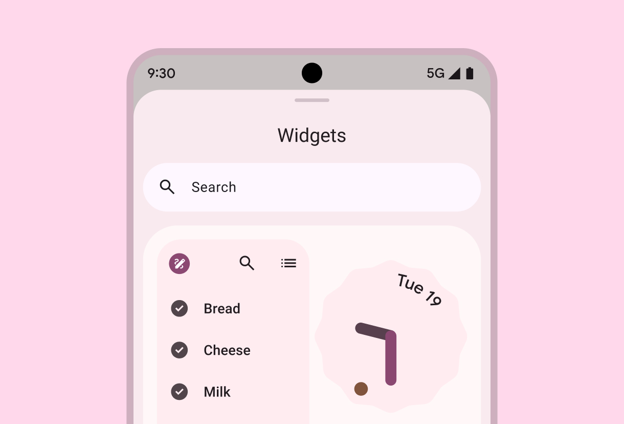 Gunakan komponen desain kami untuk membuat widget yang indah & fungsional. Komponen dan pola ini memastikan pengalaman pengguna yang optimal dengan widget, sekaligus mempertahankan konsistensi & menampilkan merek Anda.