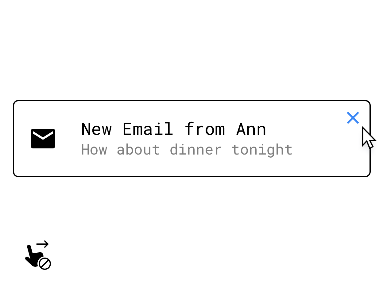请务必为隐藏在触摸专属交互(如轻触并按住操作、滑动或其他多点触控手势)下的核心功能实现键盘或鼠标替代方案。例如,您可以提供悬停光标时出现在界面上的按钮作为解决方案。