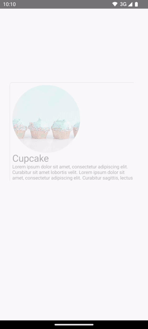 Modifier.sharedElement()を追加します。SharedContentStateオブジェクトを作成し、rememberSharedContentState()で記憶します。SharedContentStateオブジェクトは、共有される要素を決定する一意のキーを保存しています。コンテンツを識別する一意のキーを指定し、記憶するアイテムにrememberSharedContentState()を使用します。AnimatedContentScopeは、アニメーションの調整に使用される修飾子に渡されます。@Composable private fun MainContent( onShowDetails: () -> Unit, modifier: Modifier = Modifier, sharedTransitionScope: SharedTransitionScope, animatedVisibilityScope: AnimatedVisibilityScope ) { Row( // ... ) { with(sharedTransitionScope) { Image( painter = painterResource(id = R.drawable.cupcake), contentDescription = "Cupcake", modifier = Modifier .sharedElement( rememberSharedContentState(key = "image"), animatedVisibilityScope = animatedVisibilityScope ) .size(100.dp) .clip(CircleShape), contentScale = ContentScale.Crop ) // ... } } } @Composable private fun DetailsContent( modifier: Modifier = Modifier, onBack: () -> Unit, sharedTransitionScope: SharedTransitionScope, animatedVisibilityScope: AnimatedVisibilityScope ) { Column( // ... ) { with(sharedTransitionScope) { Image( painter = painterResource(id = R.drawable.cupcake), contentDescription = "Cupcake", modifier = Modifier .sharedElement( rememberSharedContentState(key = "image"), animatedVisibilityScope = animatedVisibilityScope ) .size(200.dp) .clip(CircleShape), contentScale = ContentScale.Crop ) // ... } } }