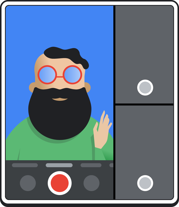 Per le istruzioni per l'utente su come accedere alla modalità schermo diviso sugli smartphone, vai a Visualizzare due app contemporaneamente sullo smartphone Pixel.