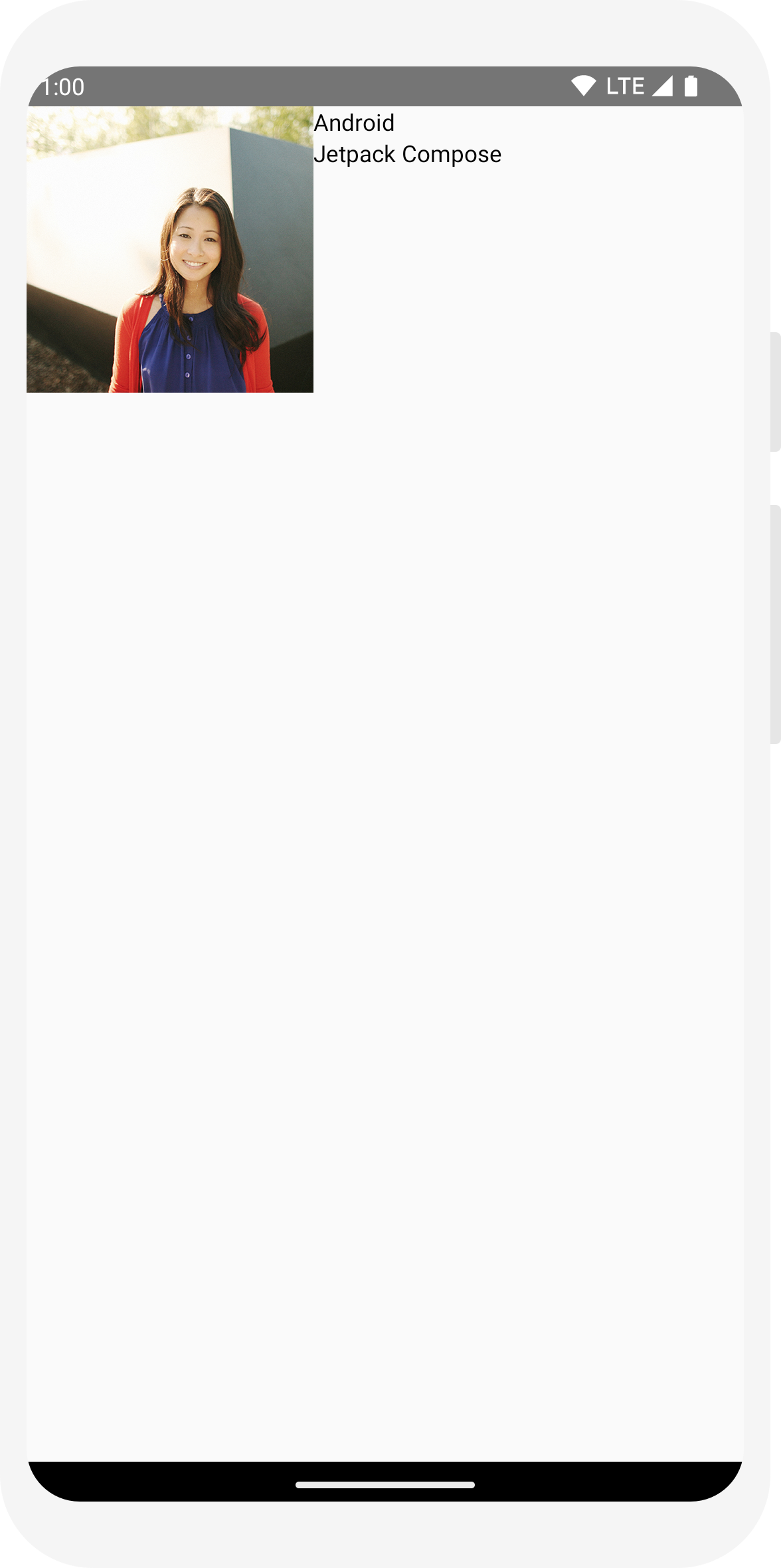 // ... import androidx.compose.foundation.layout.Column @Composable fun MessageCard(msg: Message) { Column { Text(text = msg.author) Text(text = msg.body) } }
