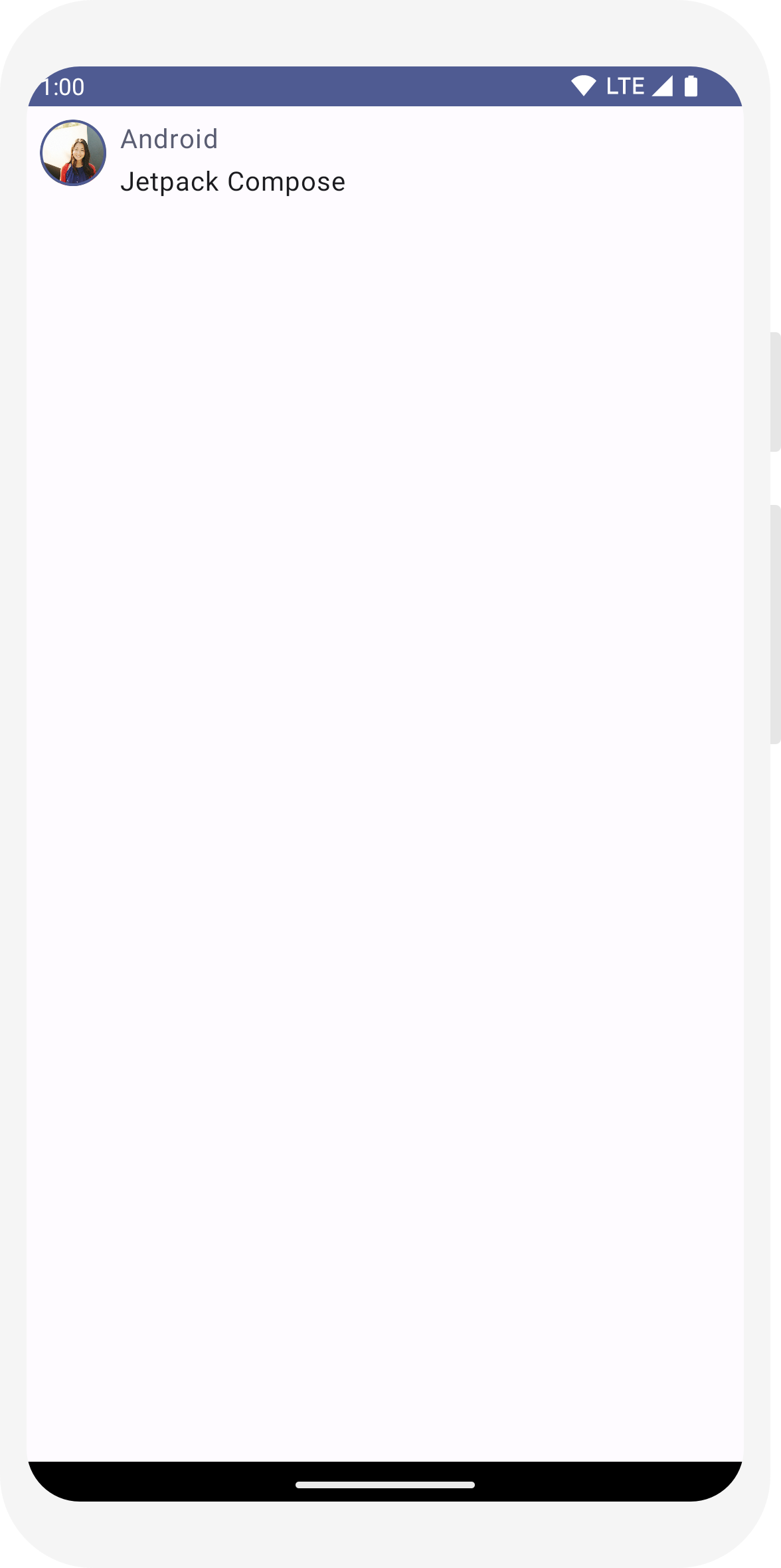 // ... class MainActivity : ComponentActivity() { override fun onCreate(savedInstanceState: Bundle?) { super.onCreate(savedInstanceState) setContent { ComposeTutorialTheme { Surface(modifier = Modifier.fillMaxSize()) { MessageCard(Message("Android", "Jetpack Compose")) } } } } } @Preview @Composable fun PreviewMessageCard() { ComposeTutorialTheme { Surface { MessageCard( msg = Message("Lexi", "Take a look at Jetpack Compose, it's great!") ) } } }