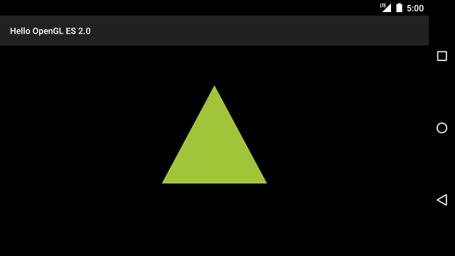 override fun onDrawFrame(unused: GL10) { ... // Set the camera position (View matrix) Matrix.setLookAtM(viewMatrix, 0, 0f, 0f, 3f, 0f, 0f, 0f, 0f, 1.0f, 0.0f) // Calculate the projection and view transformation Matrix.multiplyMM(vPMatrix, 0, projectionMatrix, 0, viewMatrix, 0) // Draw shape triangle.draw(vPMatrix)
