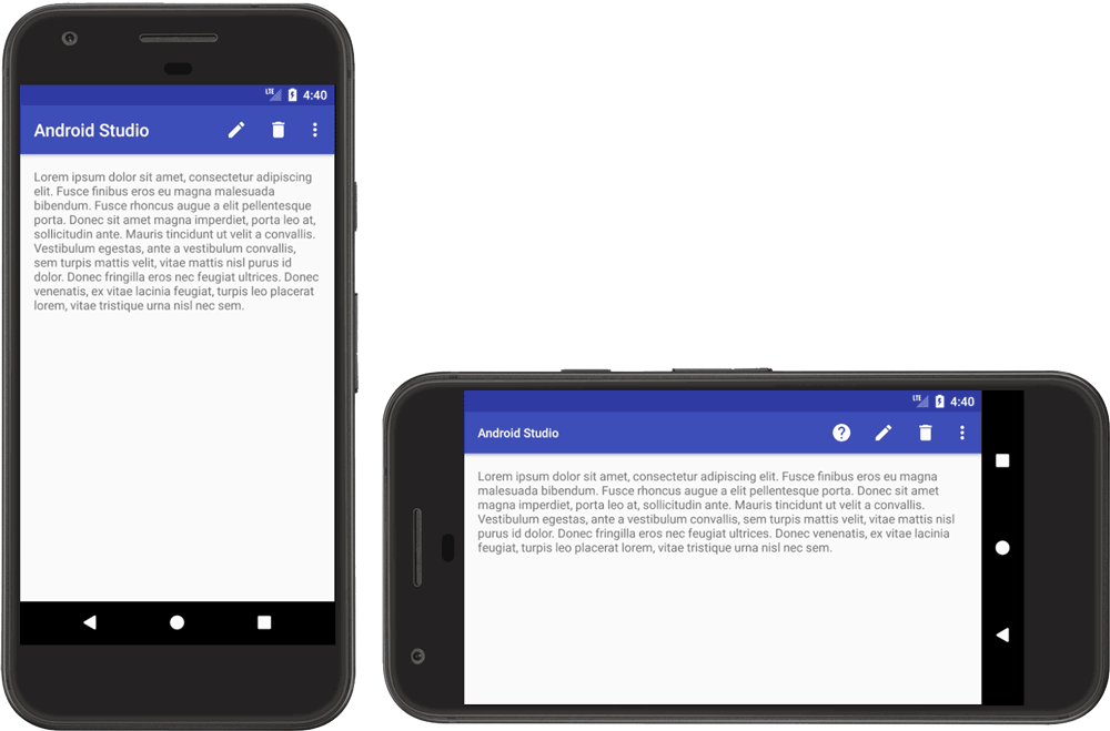 res/layout/main_activity.xml # For phones (smaller than 600dp smallest width) res/layout-sw600dp/main_activity.xml # For 7" tablets (600dp wide or wider)