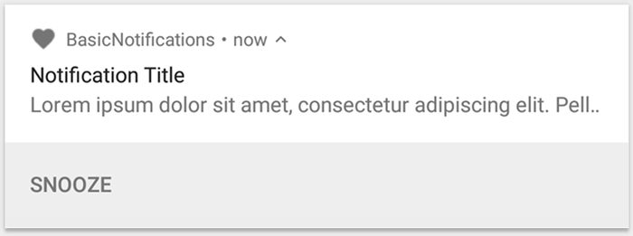 このコードは setAutoCancel() を呼び出すことに留意してください。これにより、ユーザーが通知をタップすると、自動的に通知が消去されます。